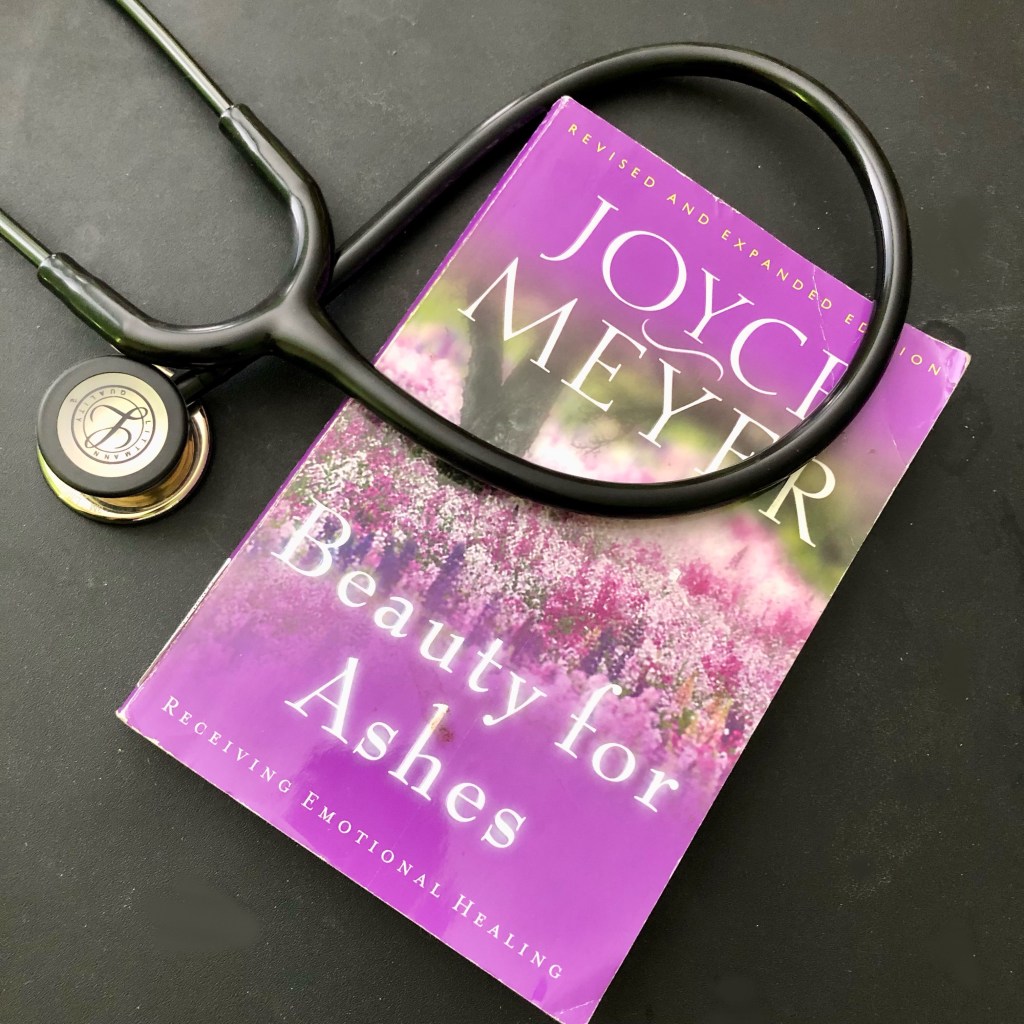 The other day, I came into work and noticed a beautiful bright purple book on my desk. “Beauty for Ashes” by Joyce Meyer was given to me by a coworker.
