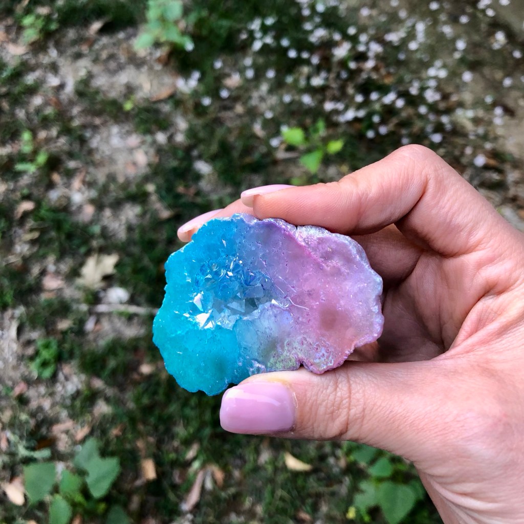 I bought a blue and pink painted piece of Quartz to commemorate a very special anniversary—the three year anniversary to be exact—at my current job as a PPEC nurse. The blue and pink represents all the baby boys and girls that have touched my heart.
