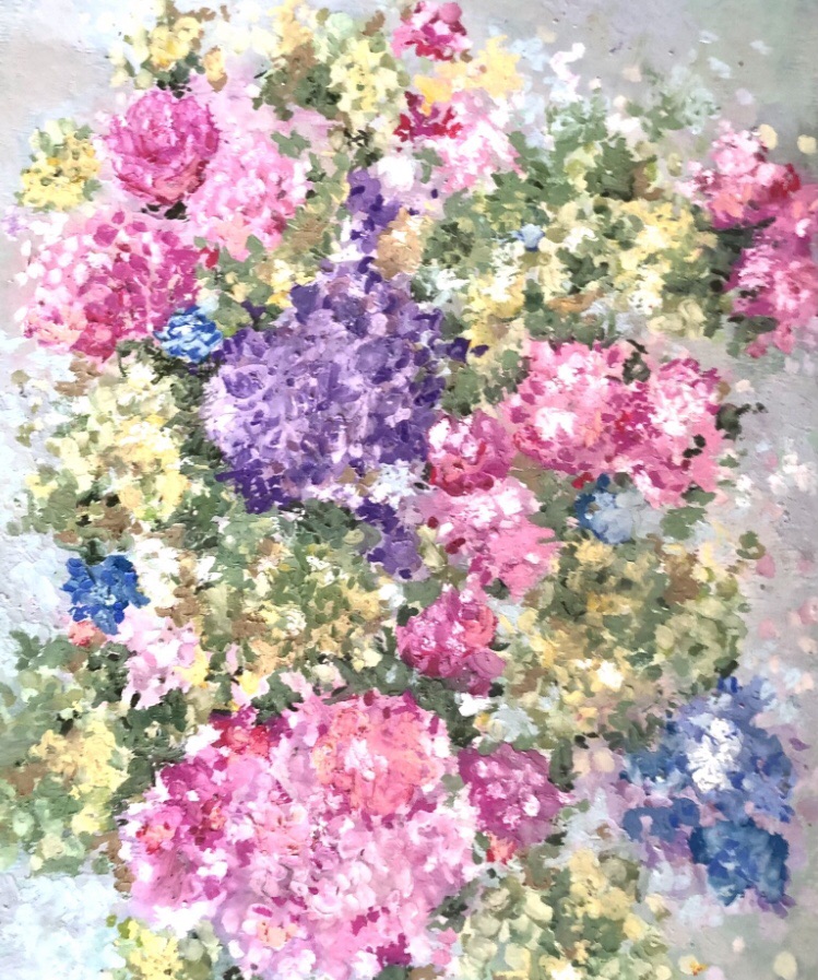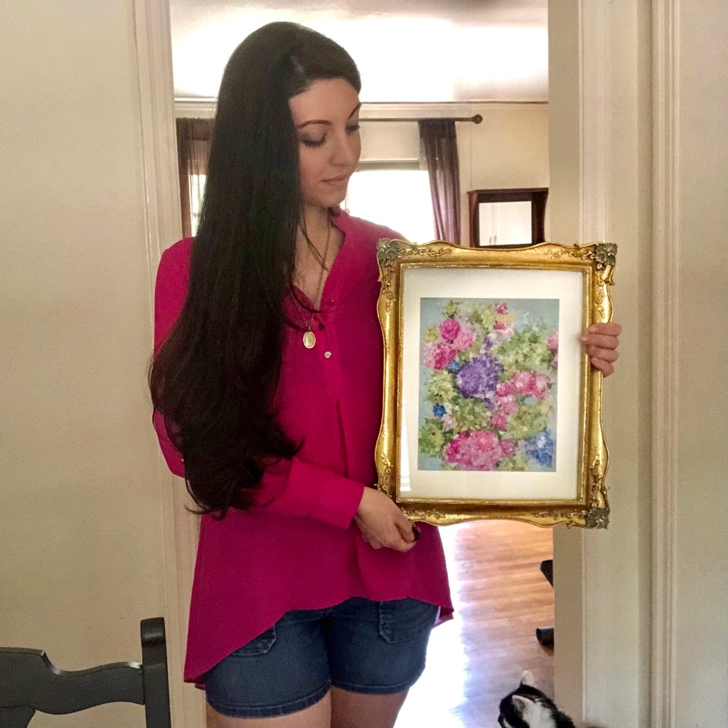 “Becoming an Artist” is an abstract floral oil pastel painting that almost ended up in the trash. It was created on a day nothing seemed to be coming together the way I envisioned. I had given myself over to the fact that it was probably going in the trash, but for whatever reason, I decided I would take a step back from it and revisit it later. A week or two went by, and I decided to pick back up the painting. By the end of it all, I realized this “piece of trash” was actually one of my favorite creations. This painting was created from faith, and it was in those moments of seeing it come to completion, I realized I was truly an artist.